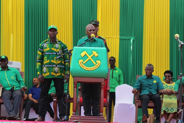 Mgombea Urais wa Jamhuri ya Muungano wa Tanzania kupitia Chama cha Mapinduzi (CCM) Rais Dk. John Pombe Magufuli akiwahutubia wananchi kwenye uwanja wa Mkendo mjini Musoma mkoani Mara katika mkutano mkubwa wa Kampeni leo Jumamosi Septemba 5, 2020. Ili kuomba kuchaguliwa katika uchaguzi Mkuu wa Rais ,Wabunge na Madiwani unaotarajiwa kufanyika Jumatano Oktoba 28,2020 nchini nzima.