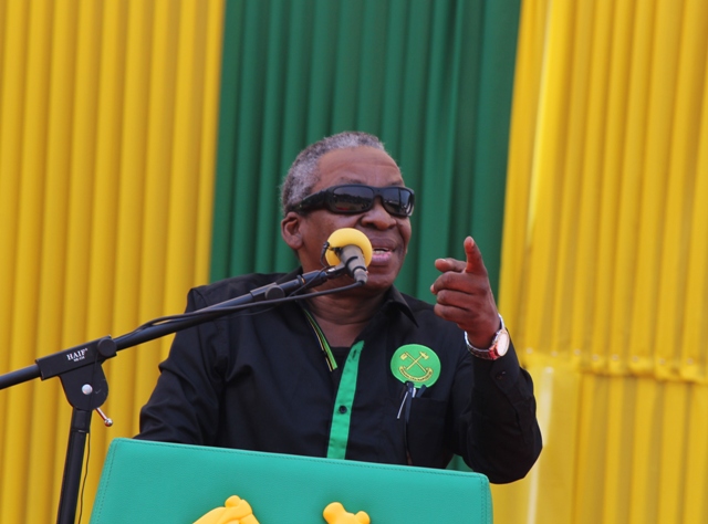 Mtoto wa Baba wa Taifa Mwalimu Julius Kambarage Nyerere Bw. Makongoro Nyerere akizungumza kwenye mkutano wa kampeni wa Mgombea kupitia chama cha Mapinduzi Rais Dk. John Pombe Magufuli wakati alipomuombea Rais kura kwa wananchi wa Musoma kwenye uwanja wa Mkendo.