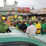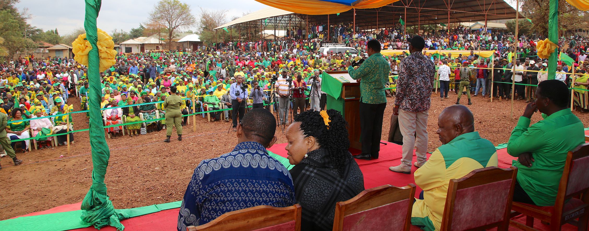 Wananchi wa Rombo wakimshangilia Mjumbe wa Kamati Kuu ya CCM Taifa na Waziri Mkuu, Kassim Majaliwa wakati alipohutubia mkutano wa kampeni kwenye uwanja wa Sokoni, Holili wilayani Rombo.