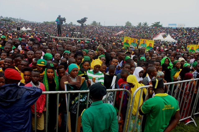 Maelfu ya wananchi wakiwa wamejitokeza kwenye uwanja wa CCM Kirumba jijini Mawanza kwa ajili ya kumsikiliza mgombea urais wa Tanzania kupitia CCM Rais Dk. John Pombe Magufuli.