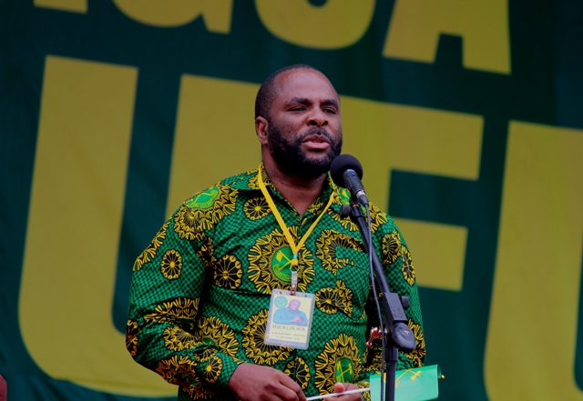 Mgombea Ubunge wa jimbo la Buchosa kwa tiketi ya (CCM)Bw. Eric Shigongo James akimuombea kura Mgombea Urais wa Tanzania kupitia Chama cha Mapinduzi (CCM) Rais Dk. John Pombe Magufuli kwenye mkutano wa kampeni mkubwa unaofanyika kwenye uwanja wa CCM Kirumba jijini Mwanza muda huu.