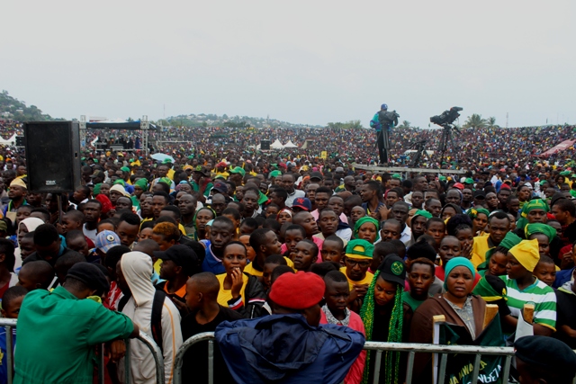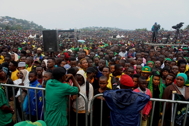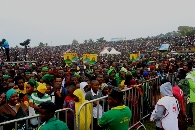 Maelfu ya wananchi wakiwa wamejitokeza kwenye uwanja wa CCM Kirumba jijini Mawanza kwa ajili ya kumsikiliza mgombea urais wa Tanzania kupitia CCM Rais Dk. John Pombe Magufuli.