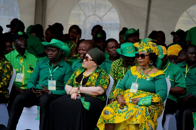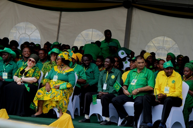 Baadhi ya viongozi mbalimbali wa CCM wakiwa tayari wameketi jukwaa kuu katika mkutano wa kampeni ambao mgombea urais wa Tanzania kupitia CCM Rais Dk. John Pombe Magufuli atahutubia kwenye uwanja wa CCM Kirumba jijini Mwanza.