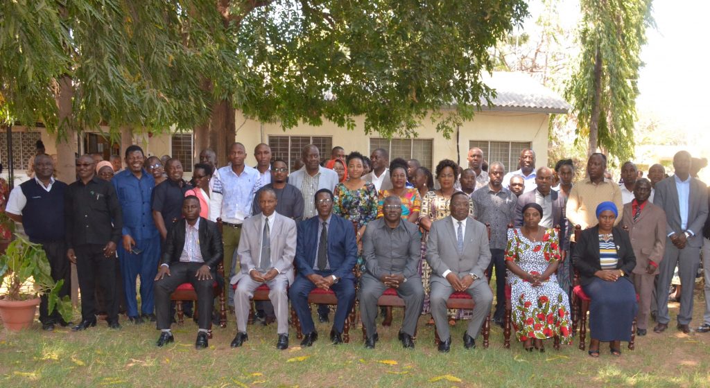 Katibu Mkuu Wizara ya Ujenzi, Uchukuzi na Mawasiliano (Sekta ya Ujenzi), Arch. Elius Mwakalinga, akiwa katika picha ya pamoja na wafanyakazi wa Wakala wa Ufundi na Umeme (TEMESA), mara baada ya kufungua kikao cha Wakala huo jijini Dodoma.