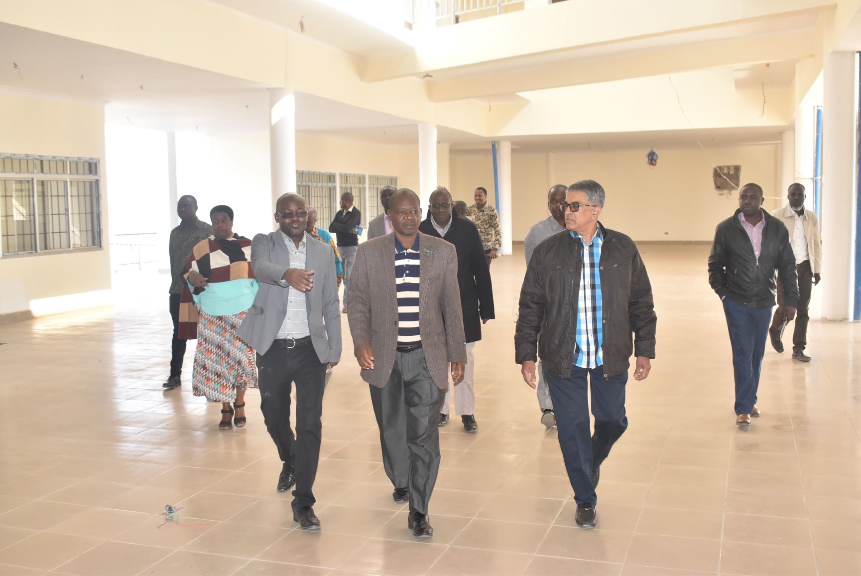 Mkuu wa mkoa wa Rukwa Mh. Joachim Wangabo akikagua ujenzi wa vyoo vya kulipia vilivyopo ndani ya jengo la abiria katika Stendi kuu ya Mabasi Sumbawanga.