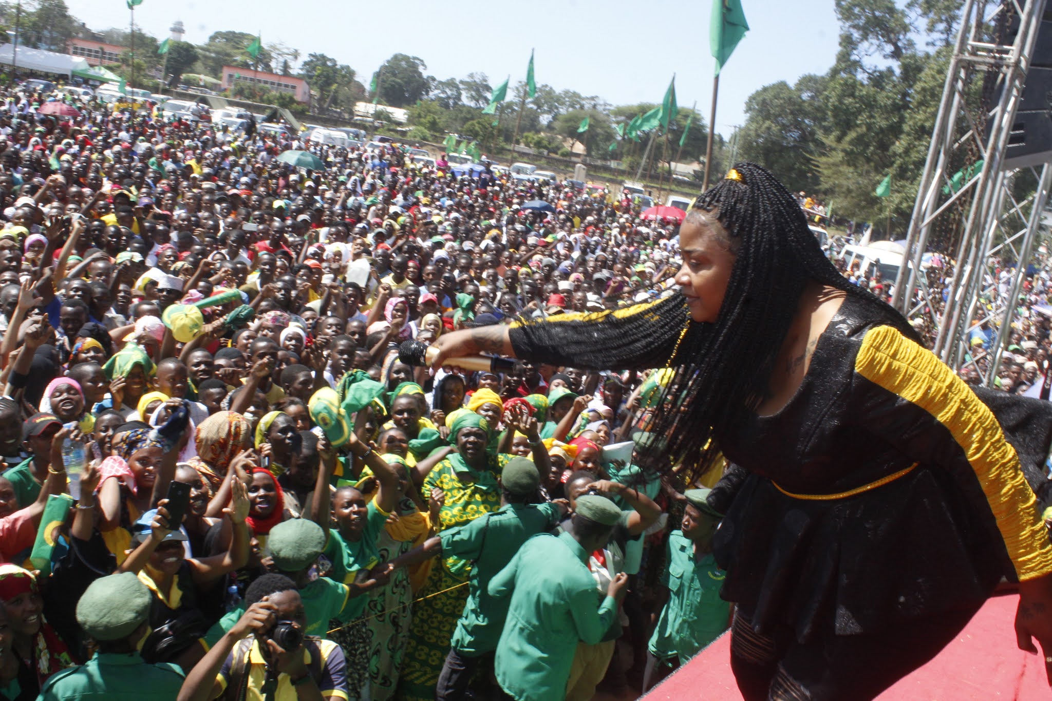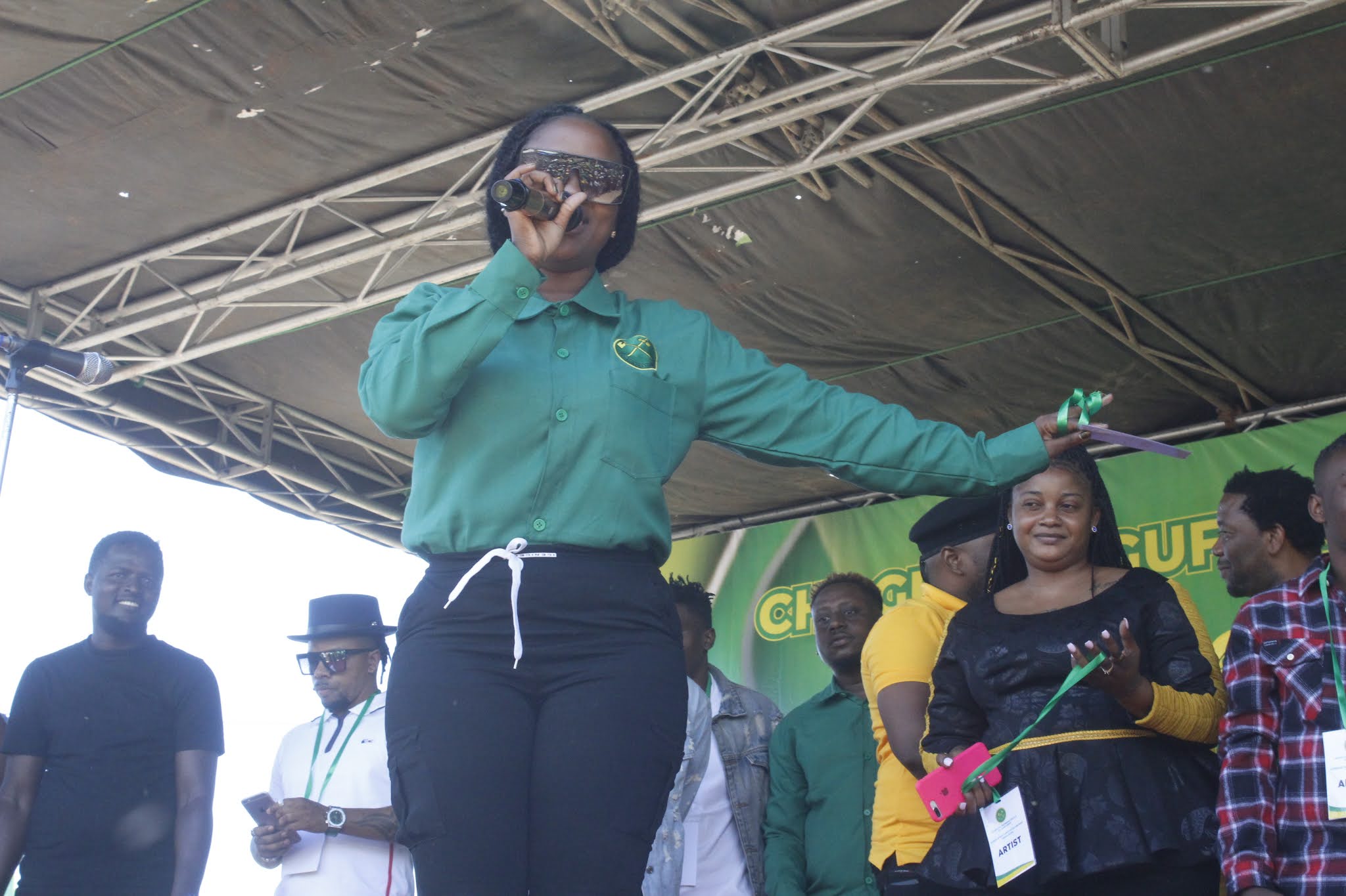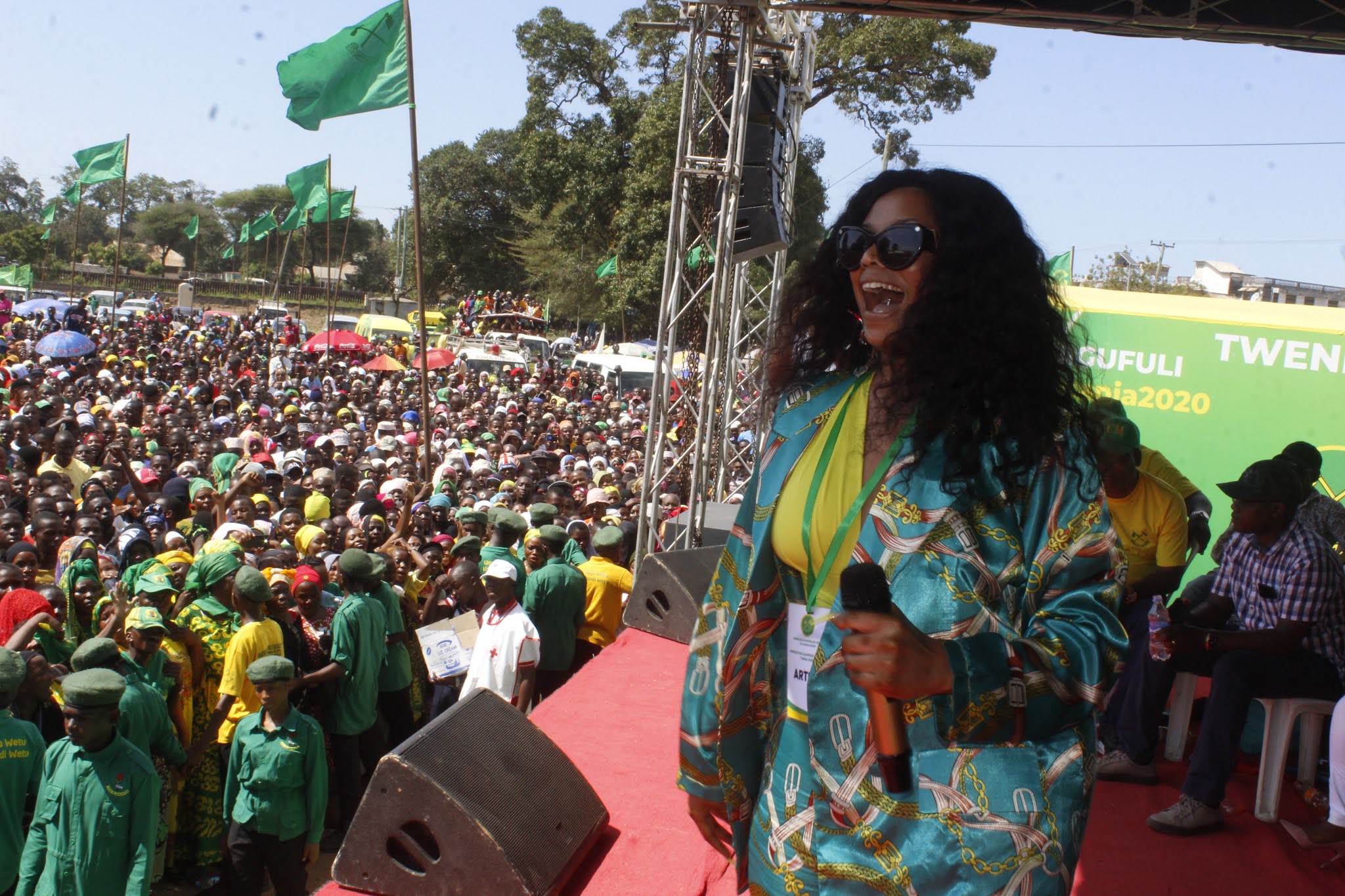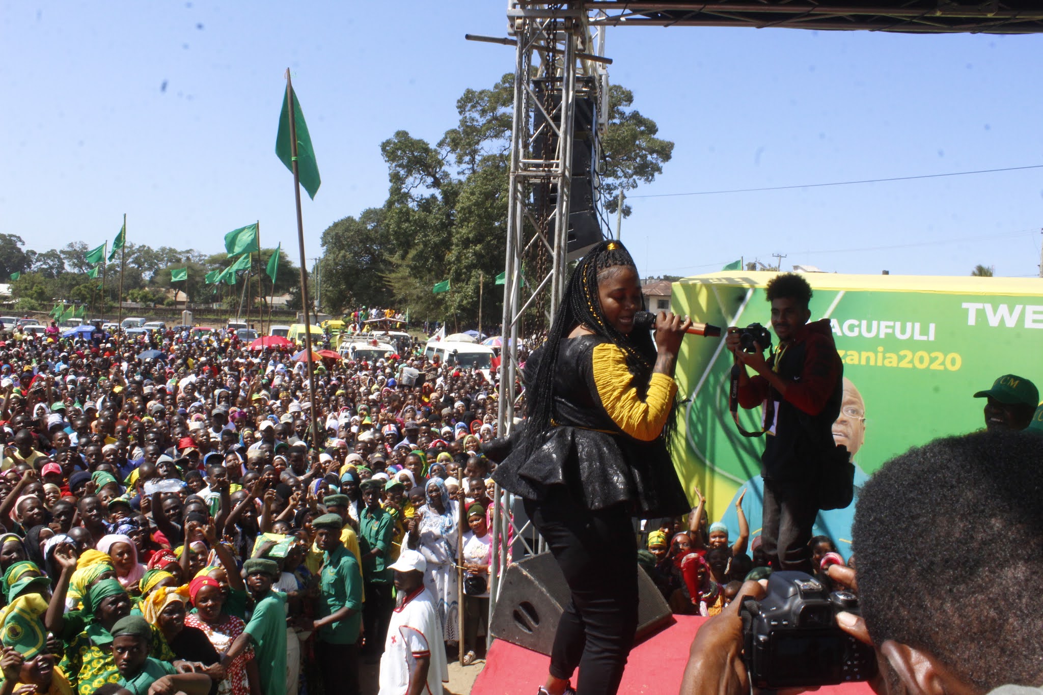 Msanii wa Bongofleva Madee akitumbiza wakati wa uzinduzi wa Kampeni za Mgombea Ubunge Jimbo la