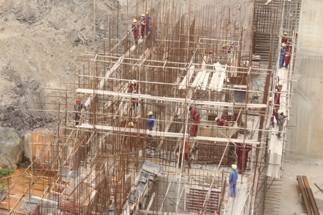 Mafundi wakiwa kazini wakiendelea na ujenzi wa mradi wa kufua umeme RUSUMO eneo ambapo itawekwa mashine za kusukuma umeme yaani (PUMP HOUSE).