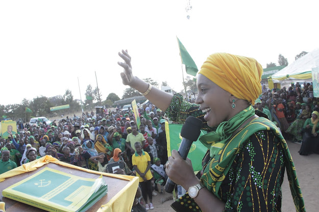Mgombea Ubunge wa Viti Maalumu wa Mkoa wa Singida, Aysharose Mattembe, akizungumza katika mkutano huo.