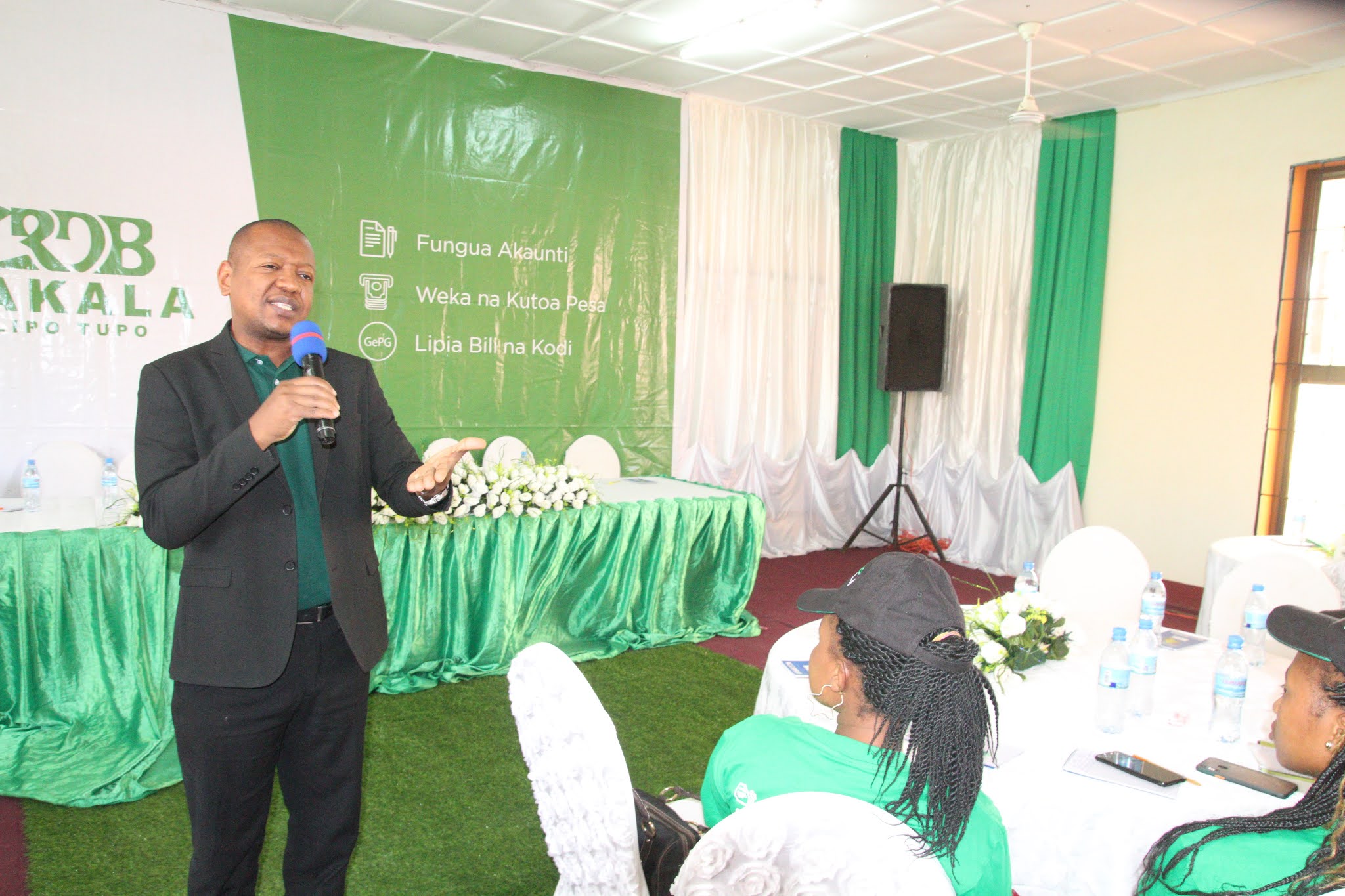 Meneja Mwandamizi -CRDB WAKALA ,Donat Mushi akizungumza na washiriki wa mafunzo hayo juu ya masuala ya usalama wakati wa utekelezaji wa majukumu yao kama mawakala wa CRDB