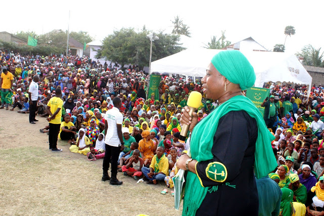 Mgombea Ubunge wa Jimbo la Tanga (CCM) Ummy Mwalimu akishiriki kucheza kabla ya kunadi sera zake