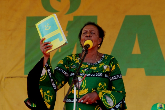 Mgombea ubunge jimbo la Urambo Mama Magreth Sitta akielezea mafanikio ya utekelezaji wa ilani iliyopita na kuonesha ilani mpya ya CCM 2020/2025 katika mkutano huo.