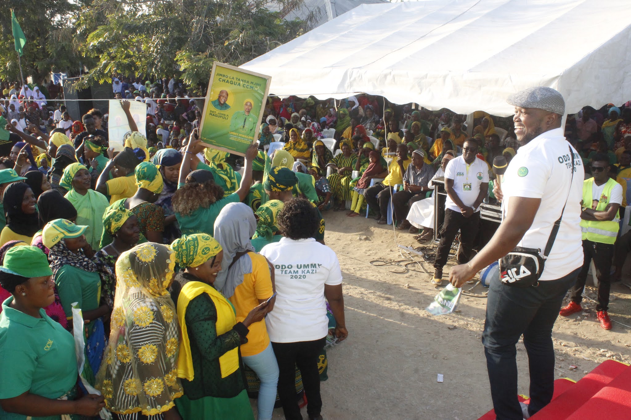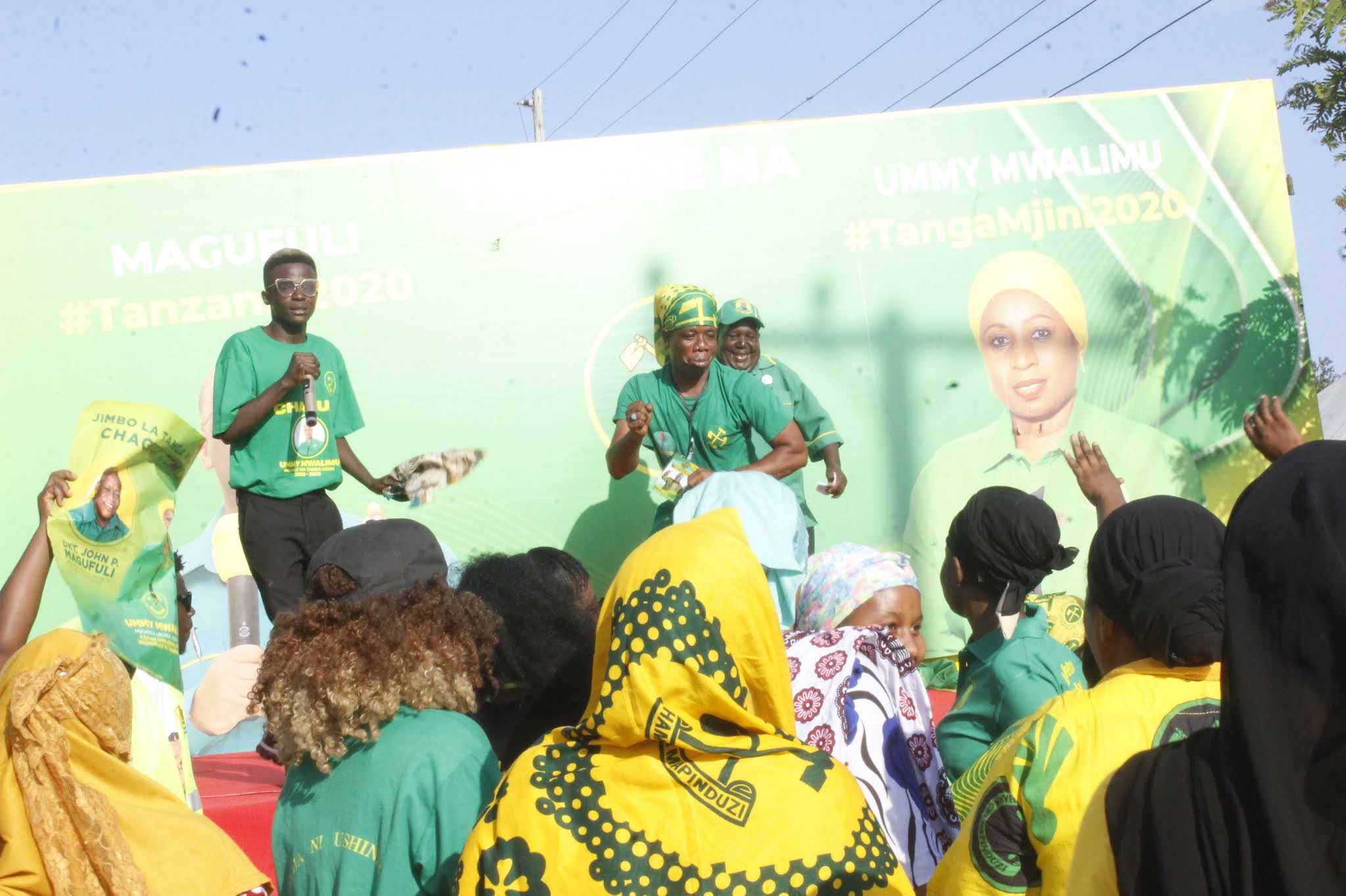 KATIBU Mwenezi wa CCM wilaya ya Tanga Lupakisyo Kapange akmuombea kura Mgombea Ubunge wa Jimbo la Tanga (CCM) Ummy Mwalimu