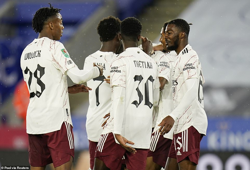 Wachezaji wa Arsenal wakipongezana baada ya ushindi wa 2-0 dhidi ya wenyeji, Leicester City, mabao ya Christian Fuchs aliyejfunga dakika ya 57 na Eddie Nketiah dakika ya 90 usiku wa jana Uwanja wa King Power kwenye mchezo wa Raundi ya Tatu Kombe la Ligi England, maarufu kama Carabao Cup PICHA ZAIDI SOMA HAPA