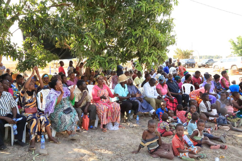 Wananchi wa Kitongoji cha Migombani,Kijiji cha Bukene, Wilaya ya Nzega, Mkoani wa Tabora, wakimsikiliza Waziri wa Nishati, Dkt.Medard Kalemani,(hayupo pichani) wakati wa uzinduzi wa mradi wa umeme kwa kila kitongoji nchini uliofanyika, Septemba 24,2020,mkaoni humo.