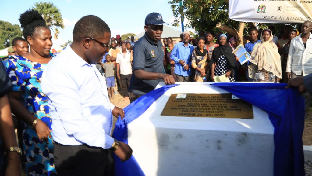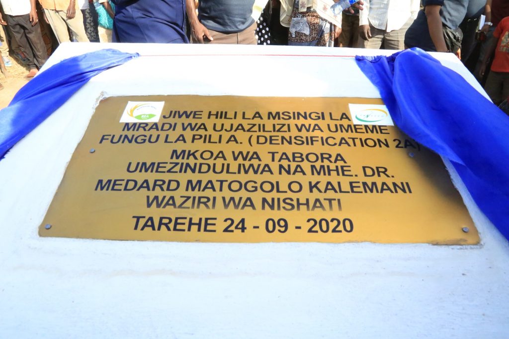 Picha ya jiwe la msingi wa mradi wa usambazaji umeme kwa kila kitongoji nchini uliofanyika uliofanyika katika Kitongoji cha Migombani, Kijiji cha Bukene, Wilaya ya Nzega, Mkoani wa Tabora, Septemba 24,2020.