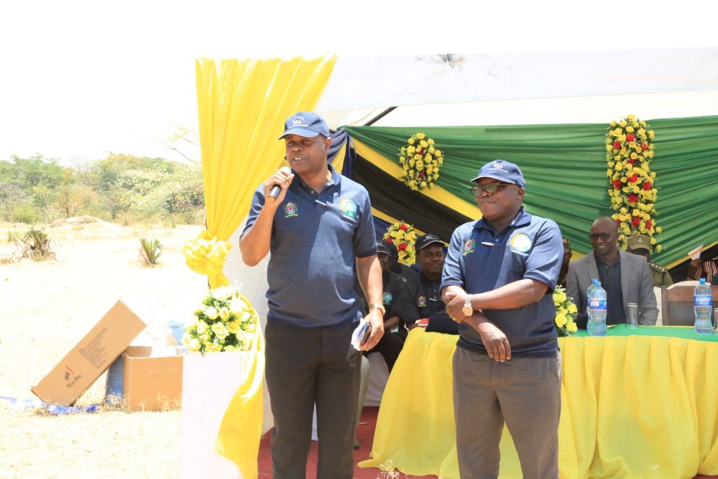 Kaimu Kamishna wa Umeme na Nishati Jadidifu, Edward Ishengoma, akiwasalimia wananchi wa Kitongaji cha Ufuruma, Kijiji cha Ufuruma,Wilaya ya Uyui,Mkoani Tabora, kwenye uzinduzi wa mradi wa usambazaji umeme kwa kila kitongoji nchini uliofanyika Septemba 24,2020.(kulia) Mkurugenzi wa Utawala na Rasilimali watu, Raphael Nombo.