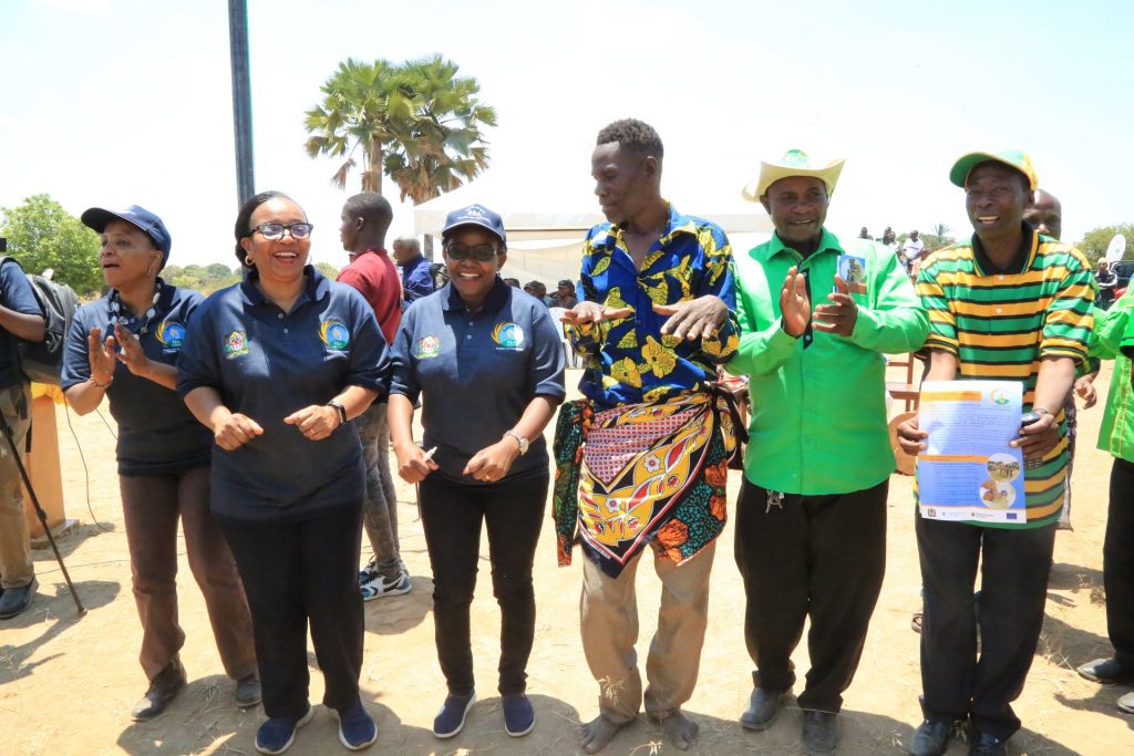 Viongozi mbalimbali wa Wizara ya Nishati Pamoja na wafanyakazi wa Wizara na Taasisi zake, wakicheza kwa furaha mara baada ya uzinduzi wa mradi wa usambazaji wa Umeme katika kila kitongoji nchini,uliofanyika katika Kitongaji cha Ufuruma,Kijiji cha Ufuruma,Wilaya ya Uyui,Mkoani Tabora.