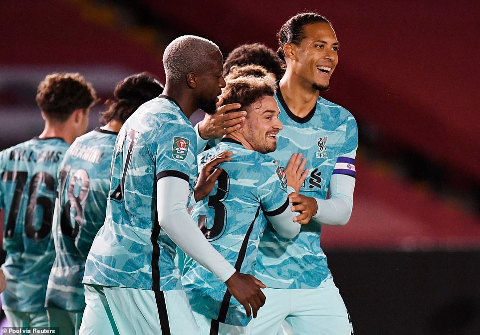 Wachezaji wa Liverpool wakipongezana kwa ushindi wa 7-2 dhidi ya Lincoln City kwenye mchezo wa Raundi ya Tatu Kombe la Ligi England, maarufu kama Carabao Cup usiku wa jana Uwanja wa LNER Jijini Lincoln.