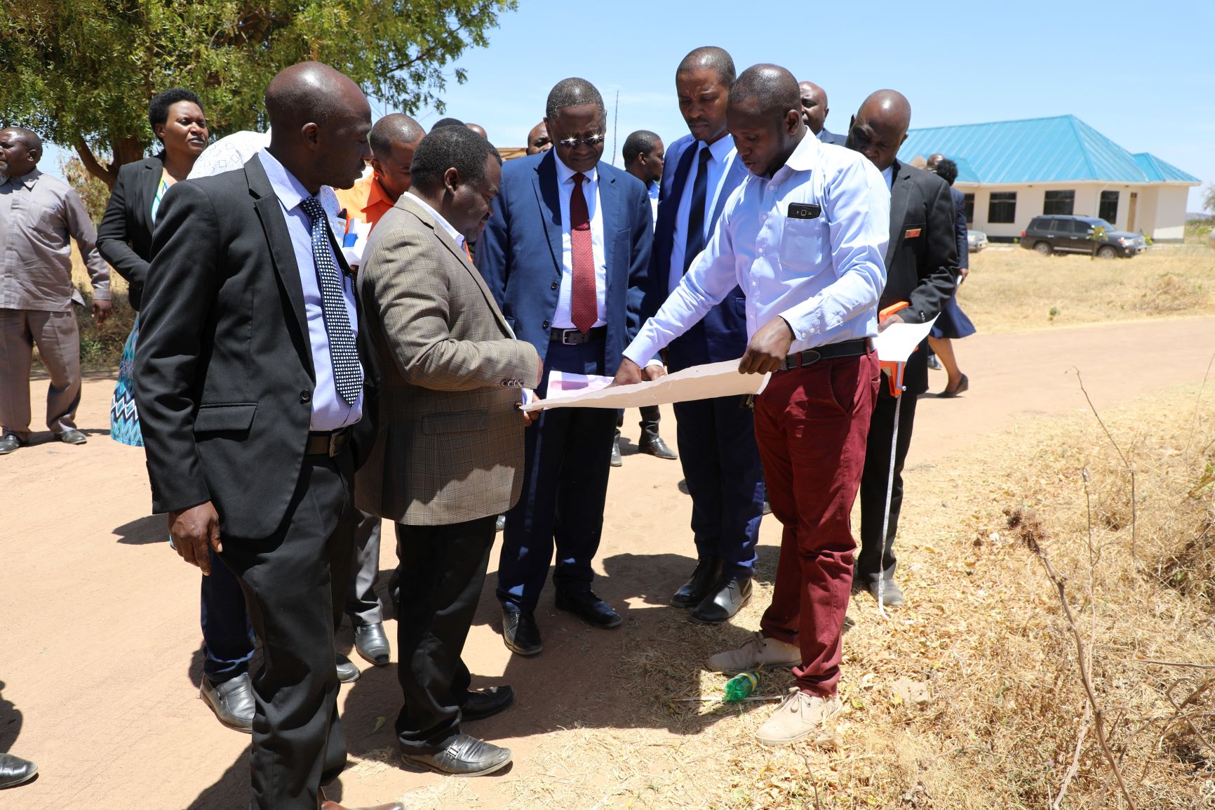 Jaji Mkuu wa Tanzania Mhe.Prof.Ibrahim Juma akioneshwa kiwanja kwa ajili ya ujenzi wa jengo la Mahakama ya wilaya ya Mkalama litakaloanza kujengwa kabla ya mwisho ya mwaka huu.