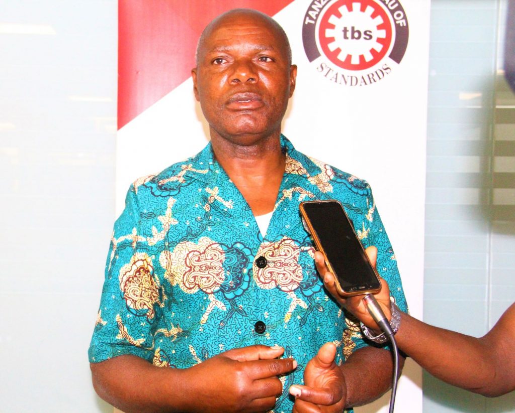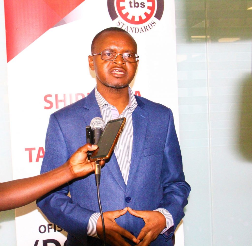 Mkurugenzi wa udhibiti ubora Shirika la viwango Tanzania TBS Bw.Lazaro Msasalaga akizungumza na waandishi wa habari mara baada kutoa semina kwa wazalishaji,wasambazaji,na wauzaji wa mafuta ya kula yaliyofanyika leo jijini Dodoma.