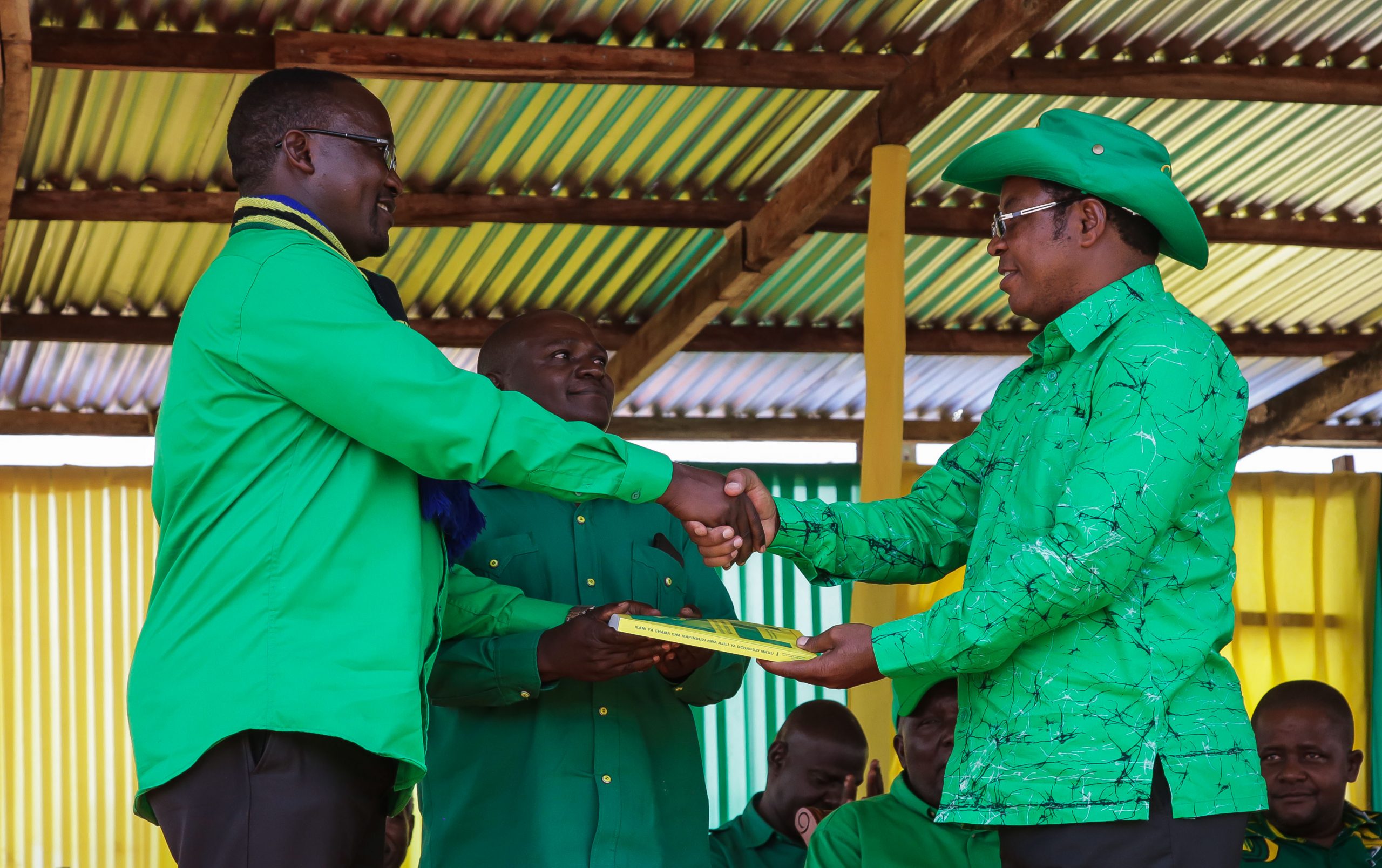 Aliyekua mgombea Ubunge Jimbo la Karagwe kupitia CHADEMA – 2015, Prince Saby, mbele ya Mjumbe wa Kamati Kuu, Kassim Majaliwa, katika mkutano wa kampeni, uliyofanyika katika viwanja vya Isingiro, Kata ya Isingiro, wilayani Kyerwa Septemba 29, 2020. (Picha na Ofisi ya Waziri Mkuu)