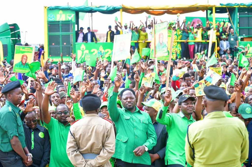 Mgombea Urais kupitia Chama cha Mapinduzi CCM, Rais Mheshimiwa Dkt. John Pombe Magufuli akiwapungia mkono Wananchi wa Mafinga mara baada ya kumaliza kuwahutubia leo tarehe 29 Septemba 2020