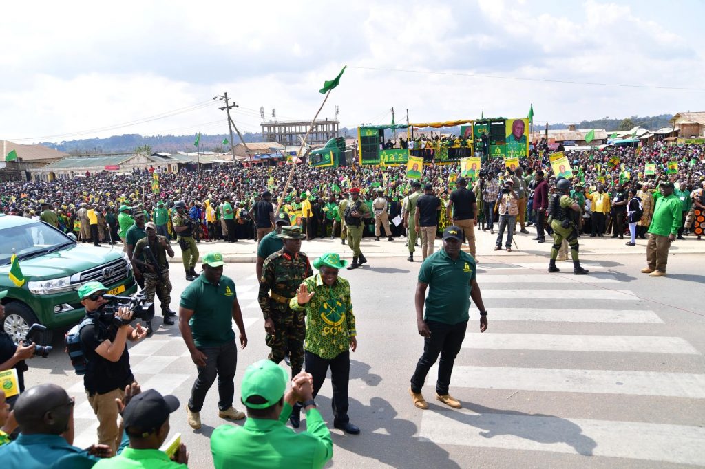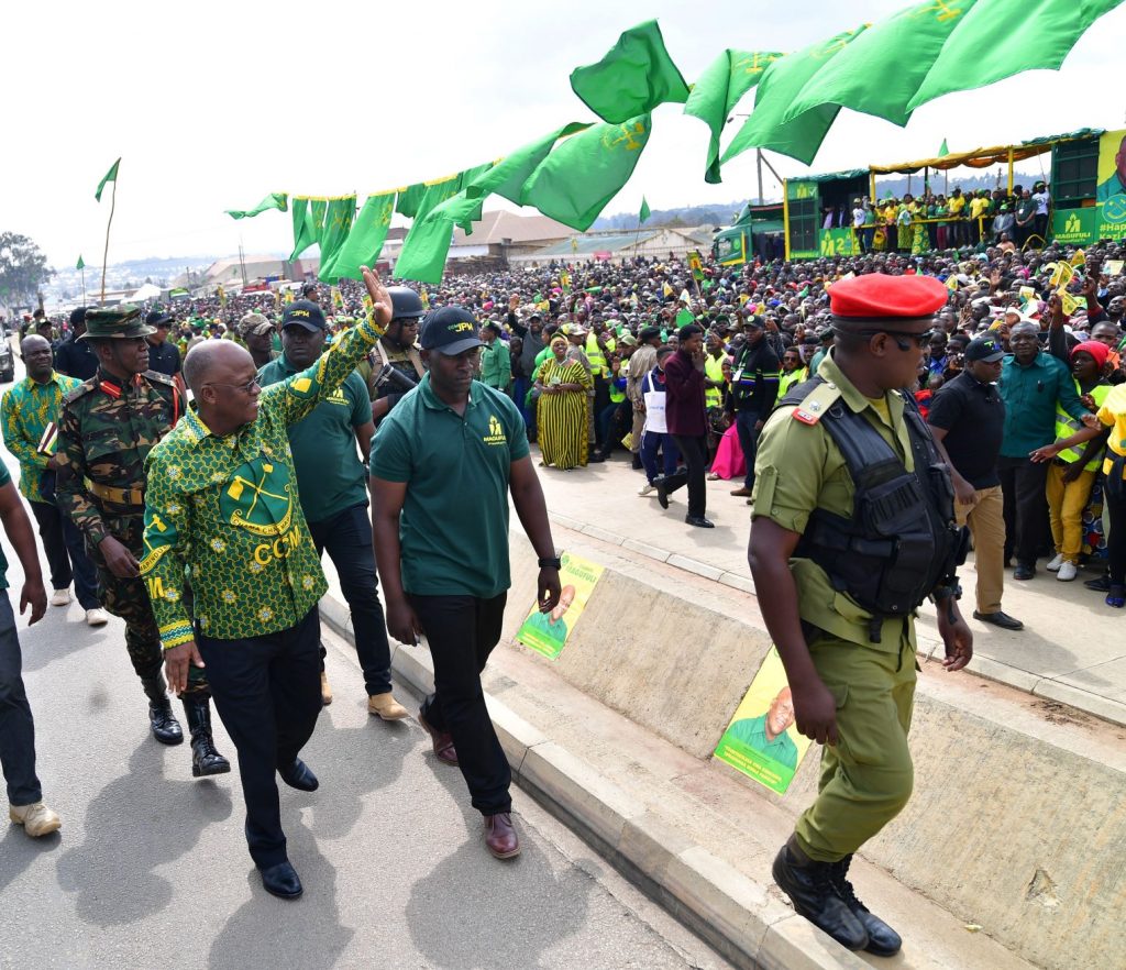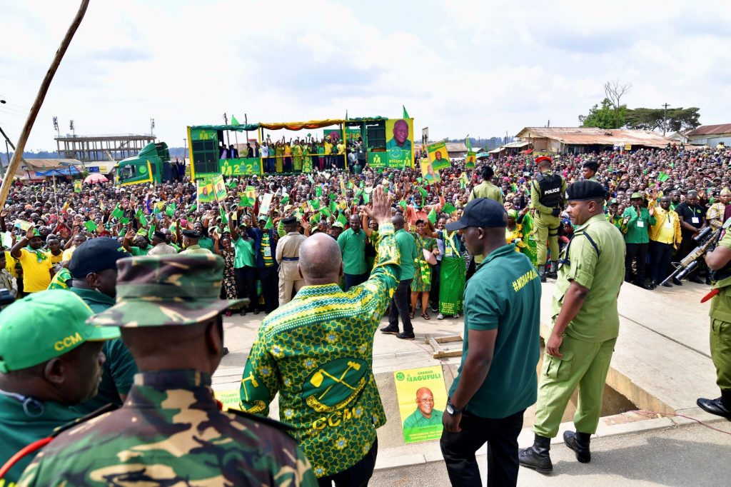 Mgombea Urais kupitia Chama cha Mapinduzi CCM, Rais Mheshimiwa Dkt. John Pombe Magufuli akiwapungia mkono Wananchi wa Mafinga mara baada ya kumaliza kuwahutubia leo tarehe 29 Septemba 2020