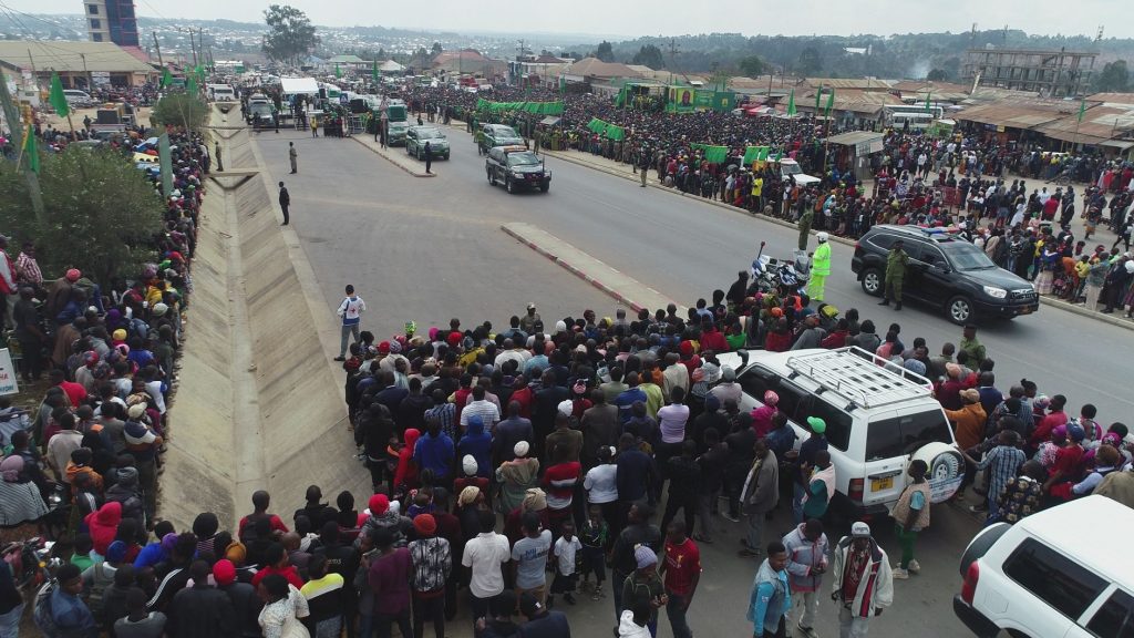 Mgombea Urais kupitia Chama cha Mapinduzi CCM, Rais Mheshimiwa Dkt. John Pombe Magufuli akiwasili Mafinga kwa ajili ya kuwahutubia wakazi wa eneo hilo wakati akitokea mkoani Iringa