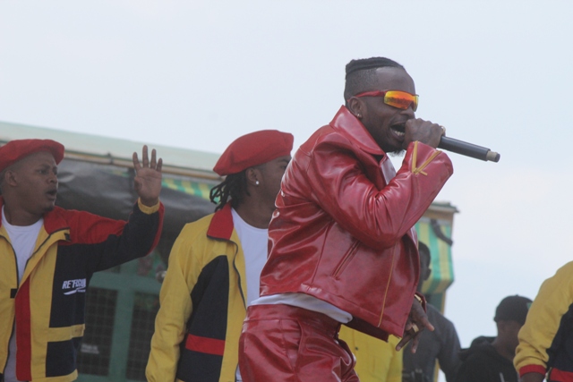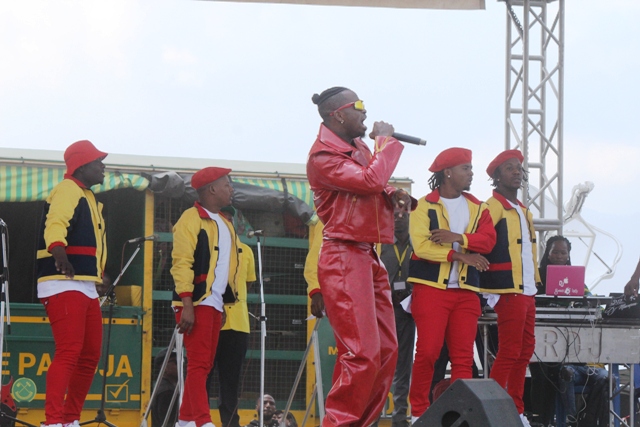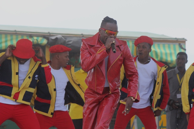 Mwanamuziki Diamondplatnamz akitumbuiza pamoja na kundi lake kwenye mkutano wa kampeni wa mgombea Urais wa jamhuri ya Muungano wa Tanzania kupitia CCM Rais Dk. John Pombe Magufuli uliofanyika kwenye uwanja wa ndege wa zamani jijini Mbeya.