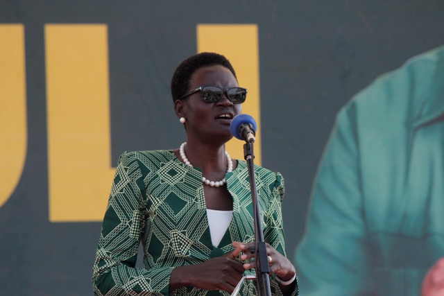 Mgombea Ubunge jimbo la Mbeya Mjini Dk. Tulia Ackson akizungumza katika mkutano huo kablaya Rais Dk. Magufuli kuhutubia mkutano huo.