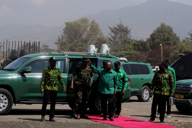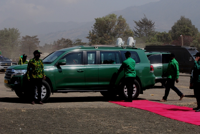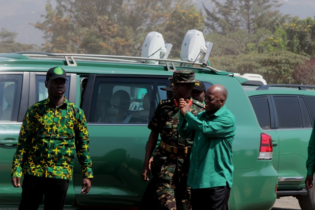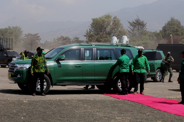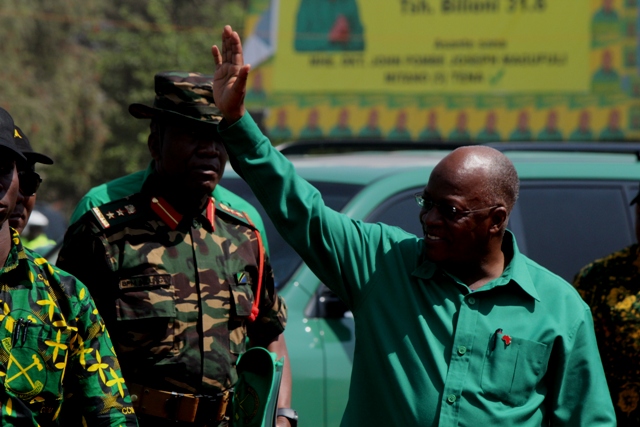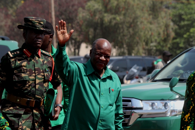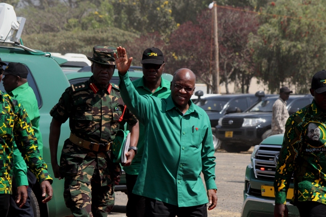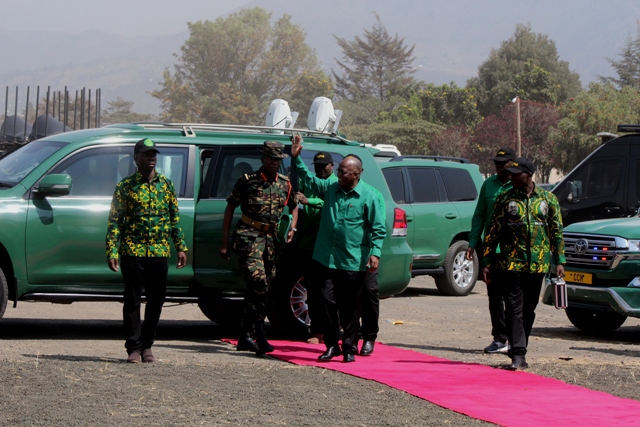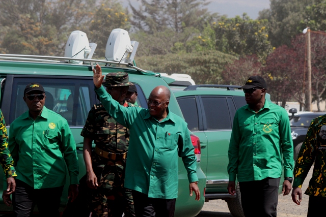 Mgombea Urais wa Jamhuri ya Muungano wa Tanzania kupitia Chama cha Mapinduzi CCM Rais Dk. John Pombe Magufuli akiwapungia wananchi wa jiji la Mbeya mara baada ya kuwasili kwenye mkutano wakapeni unaofanyika kwenye uwanja wa ndege wa zamani jijini Mbeya leo Jumatano Septema 30,2020.