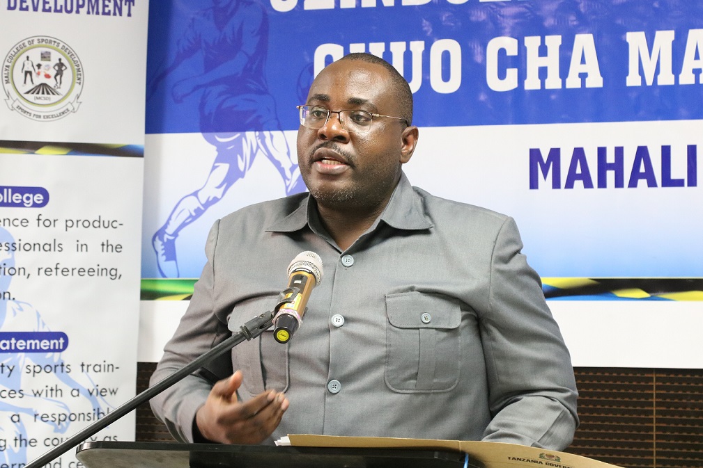 Katibu Mkuu Wizara ya Habari, Utamaduni, Sanaa na Michezo na Msemaji Mkuu wa Serikali Dkt. Hassan Abbasi akiongea na wadau wa michezo wakati wa uzinduzi wa Kituo cha Chuo cha Maendeleo ya Michezo Malya cha jijini Dar es salaam kitakachosaidia kuwaandaa na kuongeza idadi ya wataalamu wa michezo nchini.
