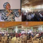 | Malori yakiwa katika foleni ya ukaguzi katika Kituo cha Kutoa Huduma kwa Pamoja Mpakani cha Rusumo.  | Bango la kutoa elimu kuhusu wafanyabiashara wadogo wanavyoweza kufanya shughuli zao katika nchi a EAC bila usumbufu.