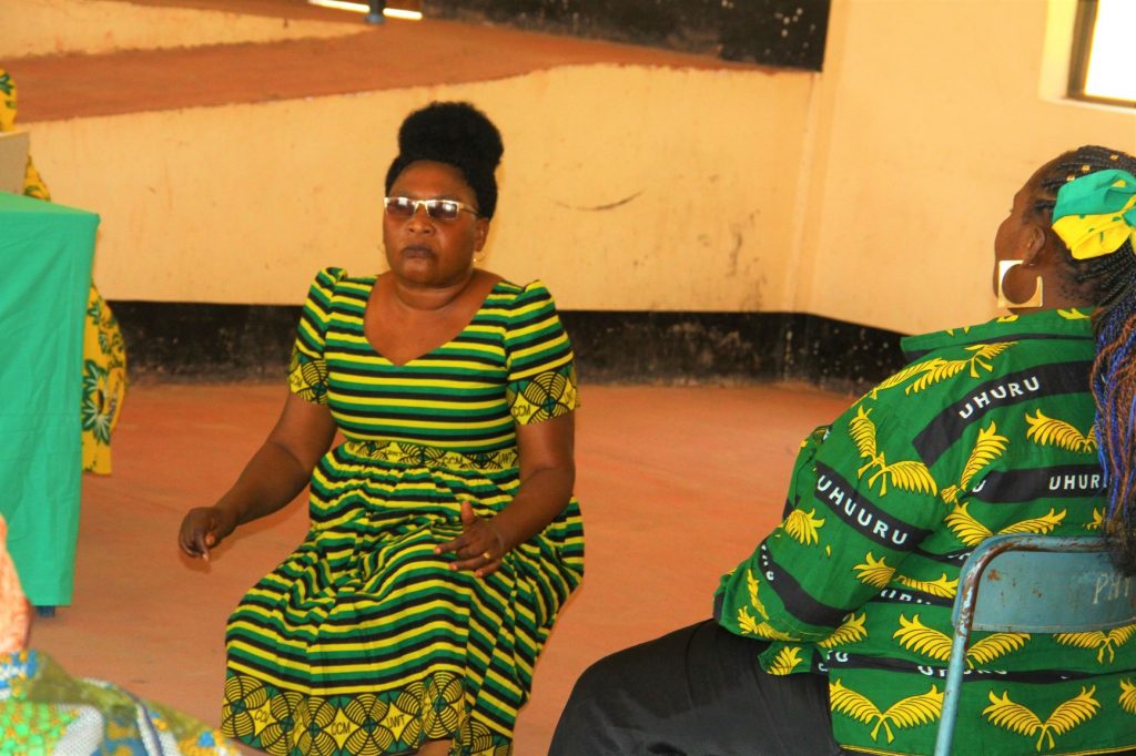 Mgombea udiwani wa Kata ya Mbabala Pascazia Mayala ,akiomba kura kwa wanawake wa Kata hiyo wakati wa ziara ya Katibu wa Jumuiya ya Wanawake wa Chama cha Mapinduzi(UWT), Wilaya ya Dodoma, Diana Madukwa wa kutafuta kura Kata kwa Kata