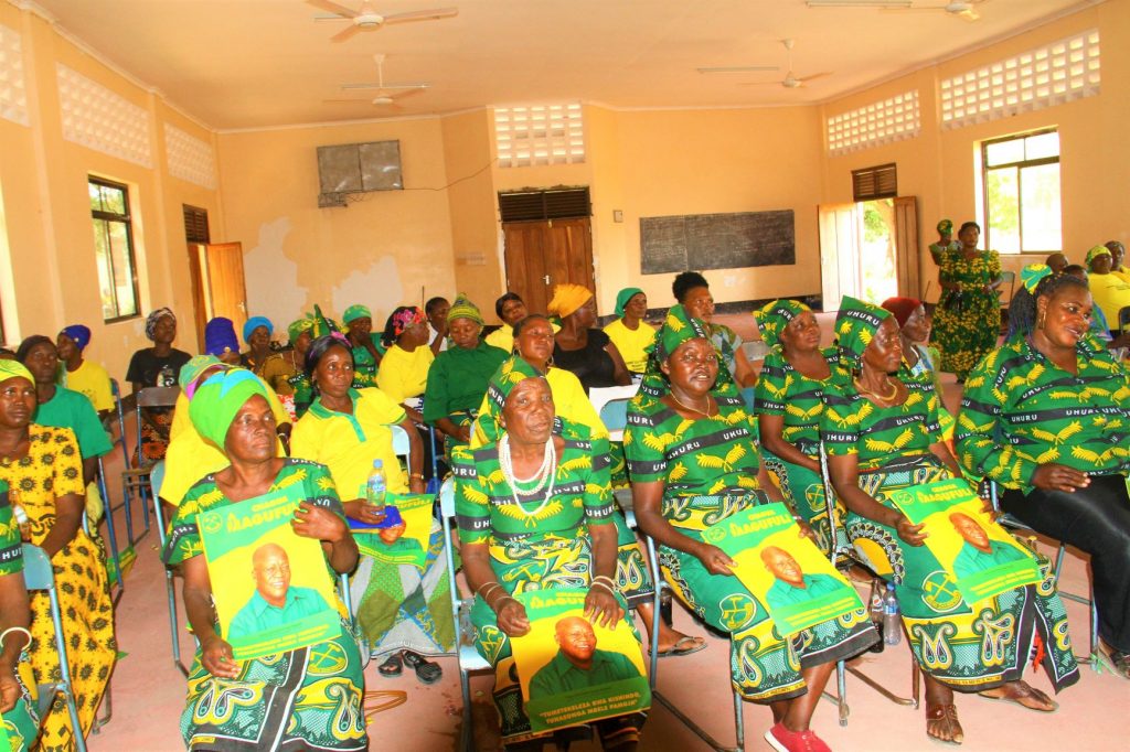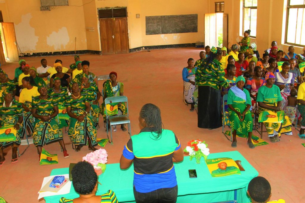 Wanawake wa Kata ya Mbabala wakiendelea kufatilia Mkutano wa ndani wakati wa ziara ya Katibu wa Jumuiya ya Wanawake wa Chama cha Mapinduzi(UWT), Wilaya ya Dodoma, Diana Madukwa akiendelea kuchanja mbuga kusaka kura za CCM Kata kwa Kata.