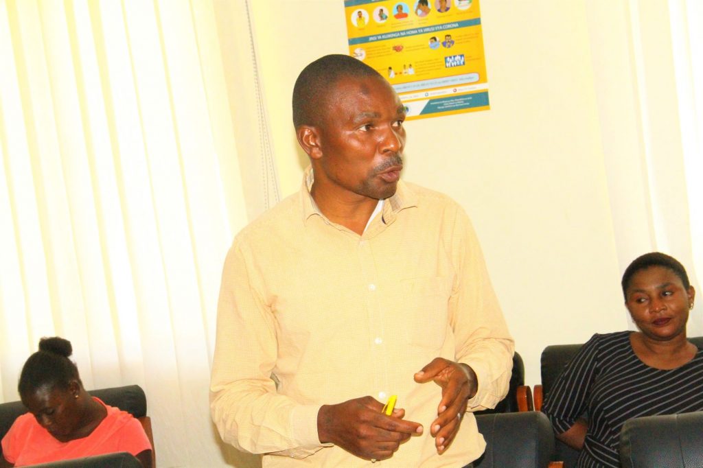 Mwaandishi wa habari Gazeti la Mwananchi Habel Chidawale akiuliza swali kwa Mkurugenzi wa Idara ya Tiba wa Wizara ya Afya, Maendeleo ya jamii, Jinsia, Wazee na Watoto, Dk.Grace Magembe,i (hayupo pichani) katika maadhimisho ya siku ya afya ya macho Duniani kwa mwaka 2020 iliyofanyika leo jijini Dodoma.