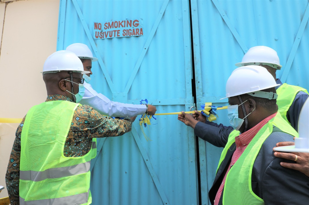 Naibu Waziri Kilimo Mhe. Hussein Bashe akikata utepe kuashiria kuzinduliwa rasmi kwa kiwanda cha kuchakata pamba mali ya Chama Kikuu cha Ushirika Chato; Wengine ni Mkuu wa mkoa wa Geita, Mhe. Robert Gabriel pamoja na Mkurugenzi Mkuu wa Benki ya Kilimo (TADB) Bwana Japhet Justine