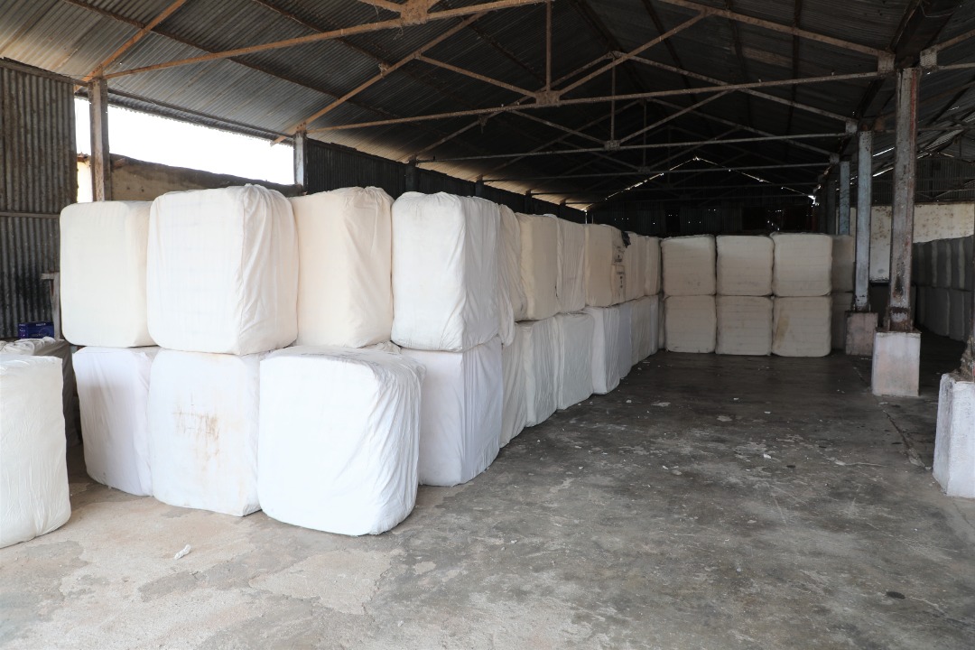 Sehemu ya marobota ya pamba yaliyochaka katika kiwanda hicho