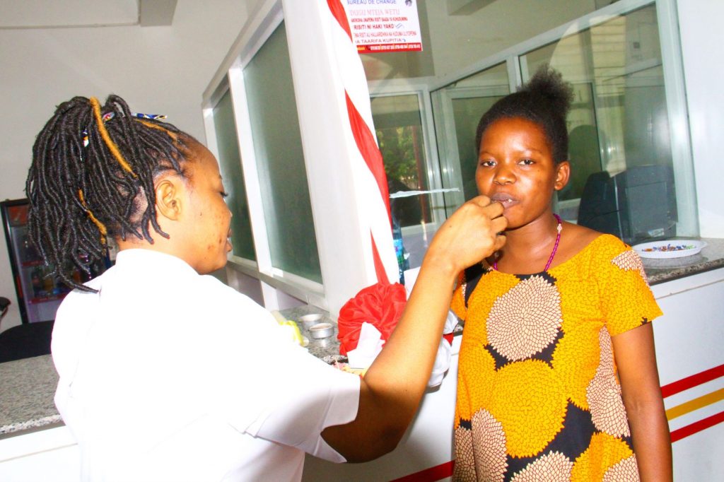 Mfanyakazi wa Shirika la Posta Dodoma,akiwalisha keki wateja wake waliofika ofisini hapo kujumuika na watumishi wa shirika hilo wakati wa maadhimisho ya wiki ya huduma kwa wateja hafla iliyofanyika jijini Dodoma.