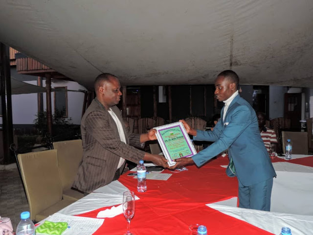 Mkurugenzi wa Me and Orphan Tanzania Musa Mofuga akimkabidhi mgeni rasmi Mhandisi David Mtunguja Cheti Cha kumtambua katika hafla ya kutimiza mwaka mmoja wa Shirika hilo