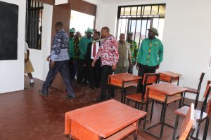 Meneja Mkuu wa Alliance Ginnery Limited, Bw. Boaz Ogola akiwaongoza Mkurugenzi Mtendaji wa Kituo cha Uwekezaji wa Tanzania-TIC, Dkt. Maduhu Kazi (mwenye skafu) na viongozi wengine kukagua chuo cha ufundi ya Kasoli iliyojengwa kwa msaada na kampuni Alliance Ginnery na kuikabidhi kwa serikali, baada ya kuifungua shule hiyo jana katika Kijiji cha Kasoli wilayani Bariadi mkoani Simiyu.