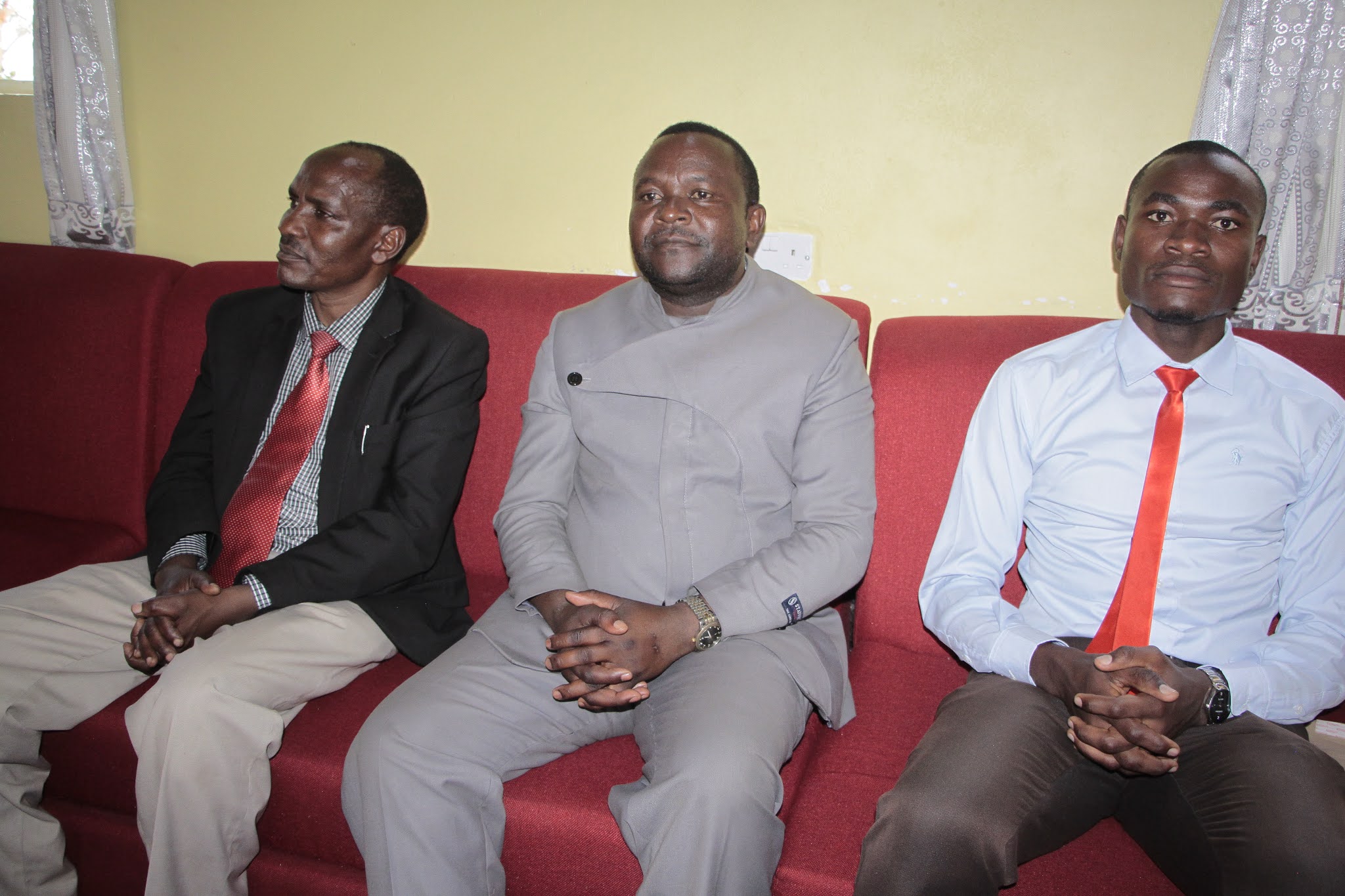 Askofu wa kanisa hilo, Gasper Mdimi (kushoto) Mchungaji Abeli Manupa na Mwalimu Mkwiye Emmanuel (kulia) wakiwa kwenye mahafali hayo.