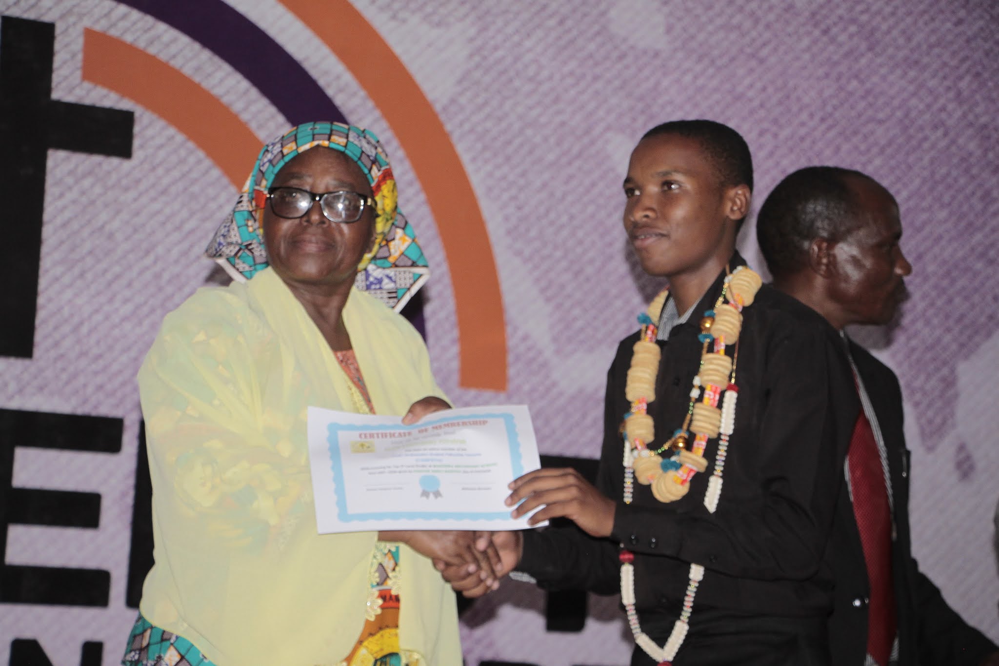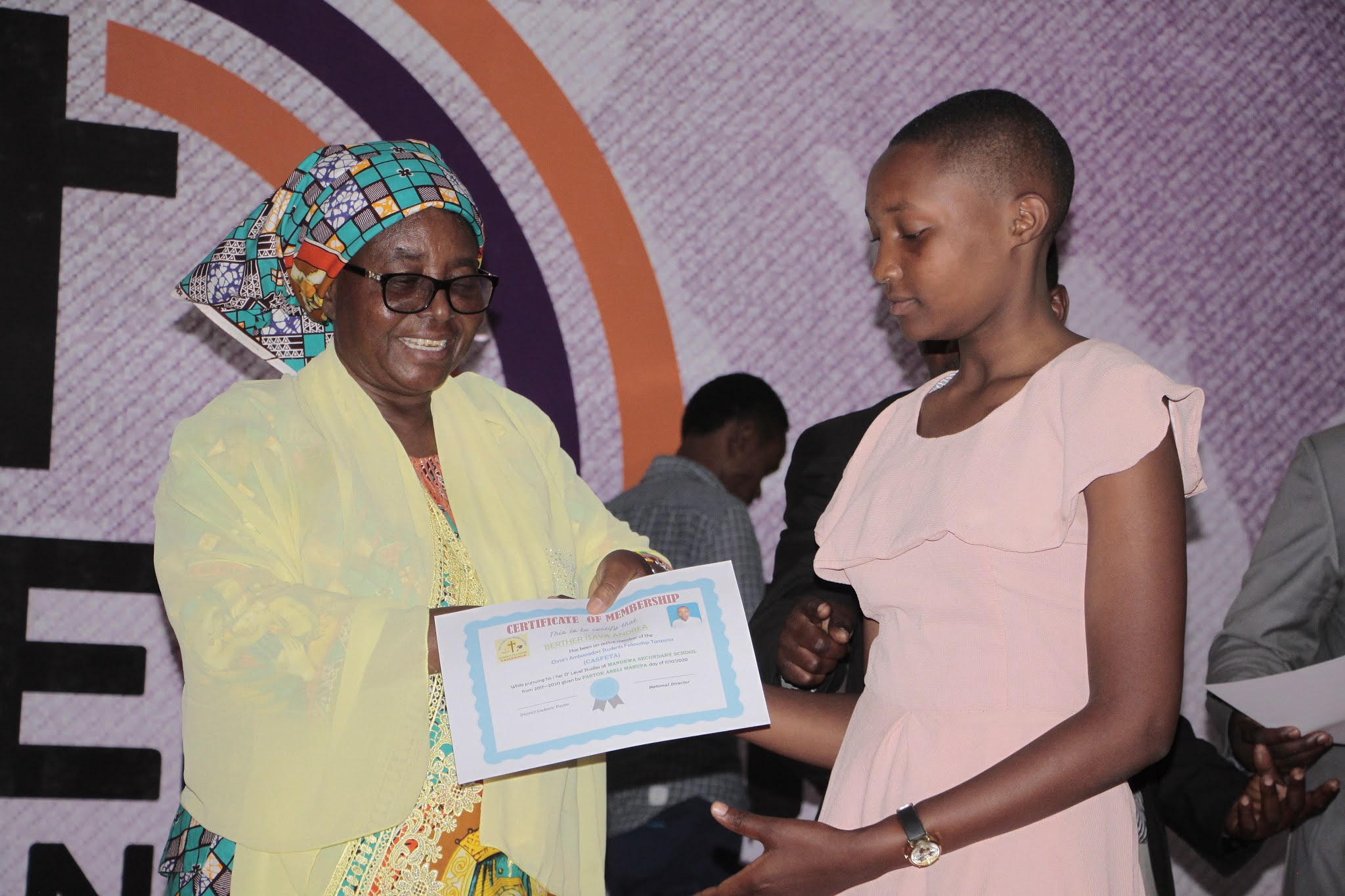 Mkuu wa wa Mkoa wa Singida, Dk. Rehema Nchimbi, akimkabidhi cheti Mhitimu, Betha Isaya.