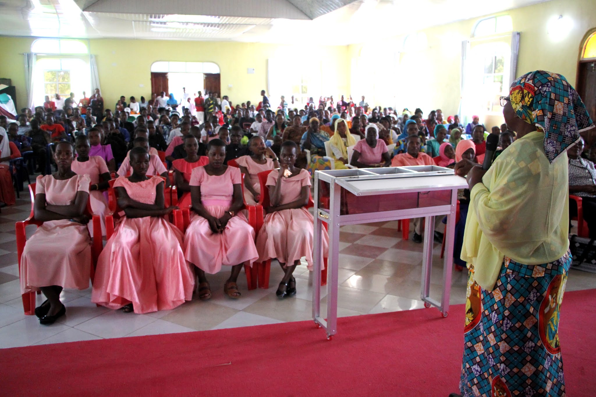 Mkuu wa wa Mkoa wa Singida, Dk. Rehema Nchimbi akihutubia wananchi, wazazi na wanafunzi wakati wa sherehe za mahafali ya kuhitimu kidato cha nne kwa wanafunzi wa Shule ya Sekondari.Mandewa wanaosali Kanisa la Tanzania Assemblies of God la Evangelistic Christian Centre (ECC), mkoani hapa jana.
