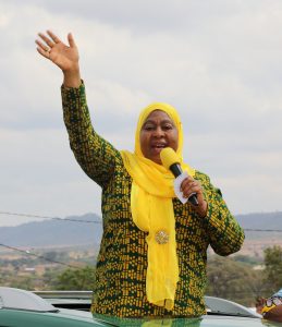 Mgombea Mwenza wa Kiti cha Urais wa Jamhuri ya Muungano wa Tanzania kwa tiketi ya CCM ambae pia ni Makamu wa Rais wa Jamhuri ya Muungano wa Tanzania Mhe. Samia Suluhu Hassan, akisalimiana na Wanachama wa Chama cha Mapinduzi CCM na Wananchi wa kijiji cha Laela Sumbawanga alipokuwa njiani akielekea Mkoani Songwe kuanza ziara ya Kampeni za Chama cha Mapinduzi CCM Mbozi Mkoani Songwe