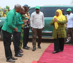 Mgombea Mwenza wa Kiti cha Urais wa Jamhuri ya Muungano wa Tanzania kwa tiketi ya CCM ambae pia ni Makamu wa Rais wa Jamhuri ya Muungano wa Tanzania Mhe. Samia Suluhu Hassan, akisalimiana na Viongozi na Wanachama wa Chama cha Mapinduzi CCM na Wananchi wa Jimbo la Momba alipowasili katika Viwanja vya Nkala Chitete Momba Mkoani Songwe leo Oktoba 13,2020 kwa ajili ya kuhutubia mkutano wa kampeni za Chama cha Mapinduzi CCM.