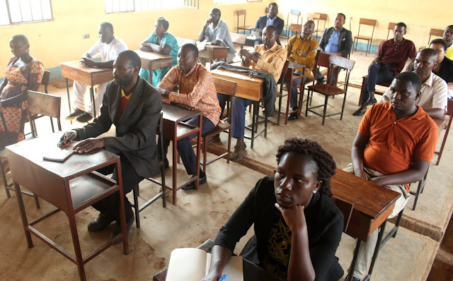 Walimu wakiwa kwenye kikao na wageni kutoka Wizara tano.