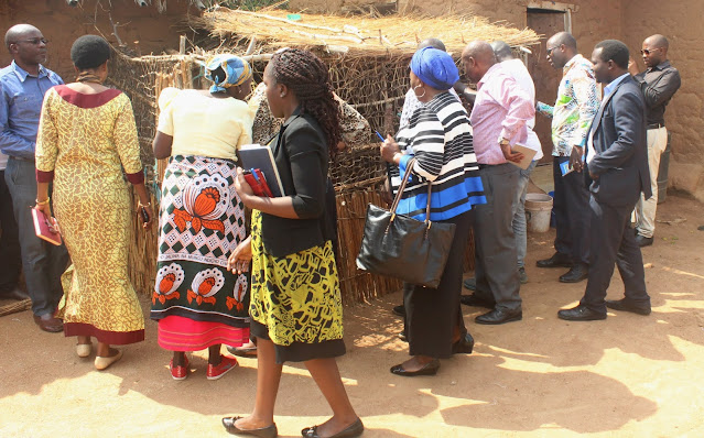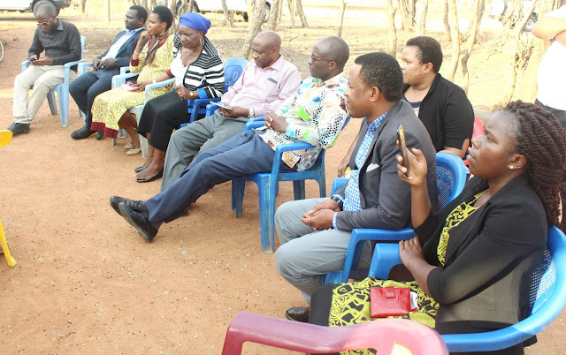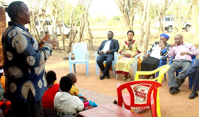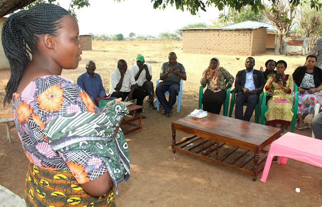 Wageni kutoka Wizara Tano wakisikiliza mafanikio ambayo yametokea ndani ya jamii, mara baada kupewa elimu ya malezi bora na kutokomeza matukio ya ukatili wa kijinsia ndani ya jamii.