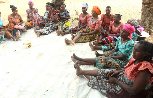 Wanakikundi cha wanawake Chimbuko la maendeleo kutoka Bukene, wakiwa kwenye kikao na wageni kutoka wizara tano.