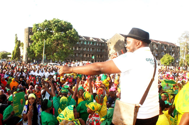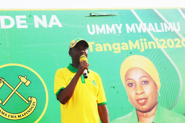 KATIBU Mwenezi wa CCM wilaya ya Tanga Lupakisyo Kapange akimuombea kura Mgombea Ubunge wa Jimbo la Tanga (CCM) Ummy Mwalimu